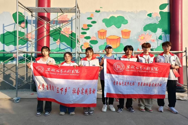 • 近日,安徽信息工程学院艺术设计学院有志青年实践团队,怀揣着青春的梦想与热情,踏上了前往湾沚区六郎镇政和村的“三下乡”之旅。在烟波浩渺的大港中,他们以画笔为媒,将非物质文化遗产生动定格于村巷白墙之上。(图为团队合影) 在政和村,有志青年队通过实地考察,采访了村干部、非遗传承人等,了解政和村基本村貌、产业特色以及非遗荷叶灯发展历程。在充分调研和沟通之后,实践队决定将政和大港周边的渔民每年农历七月十二日放荷叶灯,祈求平安的景象以墙绘的方式呈现。为了将墙绘传递“政通人和长治久安”的核心理念,有志青年队的团员们经过反复修改推敲完善,最终设计出一幅大港荷叶灯。  创作期间恰逢高温,青年团员们不畏酷暑,明确分工,齐心协力。勾勒轮廓、调配色彩、细节渲染等,每一步都力求精益求精,汗水浸湿了他们的衣背,却丝毫没有影响其创作热情。(图为创作过程)   在青年团员们的努力下,非遗荷叶灯得以在墙面上全景呈现。村民纷纷驻足欣赏,对呈现的画面赞不绝口。“画得太像了!这就是我们政和的大港、政和的灯!”村民汤先生高度评价