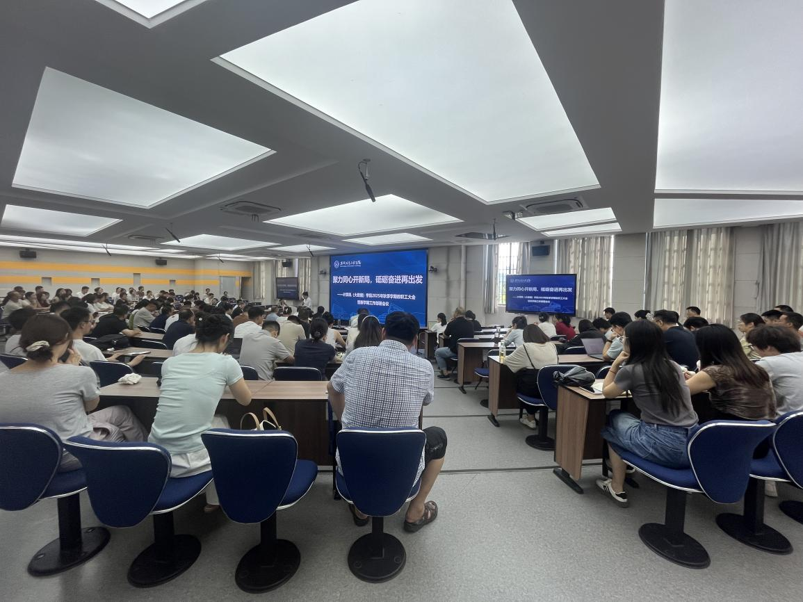 秋风送爽,新程开启。2025年9月3日下午,计算机(大数据)学院在博学楼A3 W301召开新学期全体教职工大会,旨在全面总结暑期工作成效,系统布置新学期各项重点任务。会议由副院长(主持工作)戴平主持,副院长朱洪军、副院长夏林、副书记潘经健及全体教职工参会。(图为大会现场)会议伊始,戴平介绍并欢迎了近期新入职教职工,对学院暑期工作进行了全面总结,肯定了在各方面取得的进展和成绩。随后,各分管领导布置新学期重点任务。朱洪军要求提升教学质量,并重点部署2026版人才培养方案修订、工程教育认证及智能视觉新专业筹建工作。夏林通报了科研获奖佳绩,对团队建设、项目申报及实习安全等提出新目标。潘经健就迎新、就业、校友及学风建设等学生工作进行了重点安排。(图为学院中层讲话)为加强学院师资队伍建设,特别是助力青年教师快速成长,本次大会邀请教学督导钟志水教授和学院学术委员会主任毕硕本教授分别就教学和科研工作对青年教师进行指导。钟志水结合自身丰富的教学经验,从课堂设计、师生互动、教学反思等方面分享了宝贵心得,为青