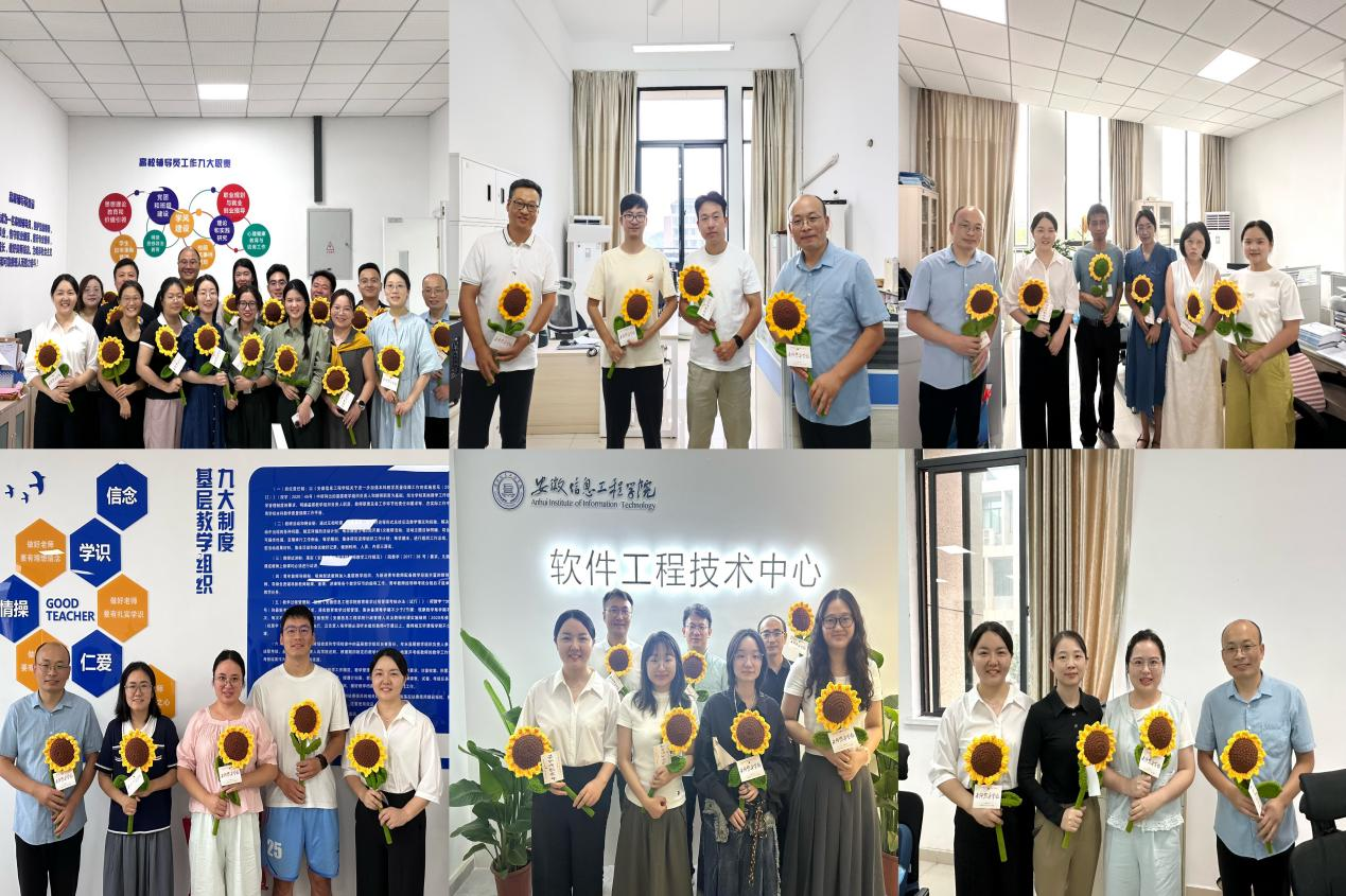 秋高气爽,师恩如光。在第41个教师节来临之际,为向辛勤耕耘在教育一线的老师们致以崇高敬意与衷心祝福,计算机(大数据)学院分工会精心筹备系列庆祝活动。9月10日上午,计算机(大数据)学院副院长戴平、朱洪军,党总支副书记潘经健带着饱含心意的编织花束,走进教研室和各团队,为老师们送去节日的第一份惊喜与温暖,拉开了“以教育家精神铸魂强师,谱写教育强国建设华章”教师节系列庆祝活动的序幕。(图为戴平、朱洪军、潘经健给各教研室送花)此外,下午的教师节活动现场设置了丰富多彩的互动游戏,既有考验默契、活泼有趣的团队项目,也有充满挑战和个人趣味的单人游戏。在“你来比划我来猜”的团队游戏区,教师组队参与,一方用生动的肢体语言生动比划,另一方绞尽脑汁快速猜词,一个个有趣的词汇引发了阵阵欢笑和掌声,充分展现了教师们的默契配合与机智反应。传统“投壶”游戏前也排起了长队,老师们凝神静气,瞄准、投掷,每一次箭矢入壶都引来喝彩,在体验传统文化的同时也收获了成功的喜悦。而紧跟时代潮流的“Emoji猜词”游戏则让老师们化身“