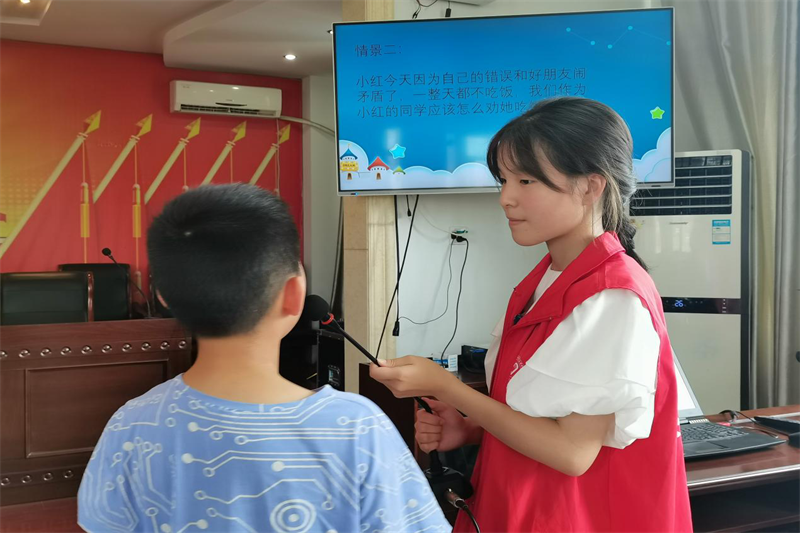 本网讯 为加强未成年群体的法律意识与维权意识,提高自我保护能力。2022年7月8日,安徽信息工程学院青年志愿者协会“七彩假期”支教团博学分队在校团委的指导下,走进芜湖市湾沚区民主社区,开展以“趣味普法进课堂”为主题的支教活动。下午3时,志愿者们到达芜湖市湾沚区民主社区。此次课程主要由介绍国家宪法日、孩子们身边的法律、国旗法、小学生应知应会法律常识四个部分构成。首先,志愿者们向孩子们普及了国家宪法日的概念。在谈到“孩子们身边的法律”这一主题时,志愿者们通过列举身边法律案例的形式,让孩子们更好的了解身边的法律。志愿者们还着重介绍了《中华人民共和国国旗法》,让孩子们在树立爱国主义精神的同时,进一步增强法制观念。最后,志愿者们通过法律测试题的形式,对孩子们进行随堂测验。课程结束后,志愿者们走进民主社区青少年活动中心开展问卷调研活动,与孩子家长就如何增强孩子们的法律意识进行深入交流。(图为孩子们在认真听课)(图为志愿者与孩子家长交流)少年儿童是祖国的未来,是中华民族的希望。通过本次普法课堂活动,让